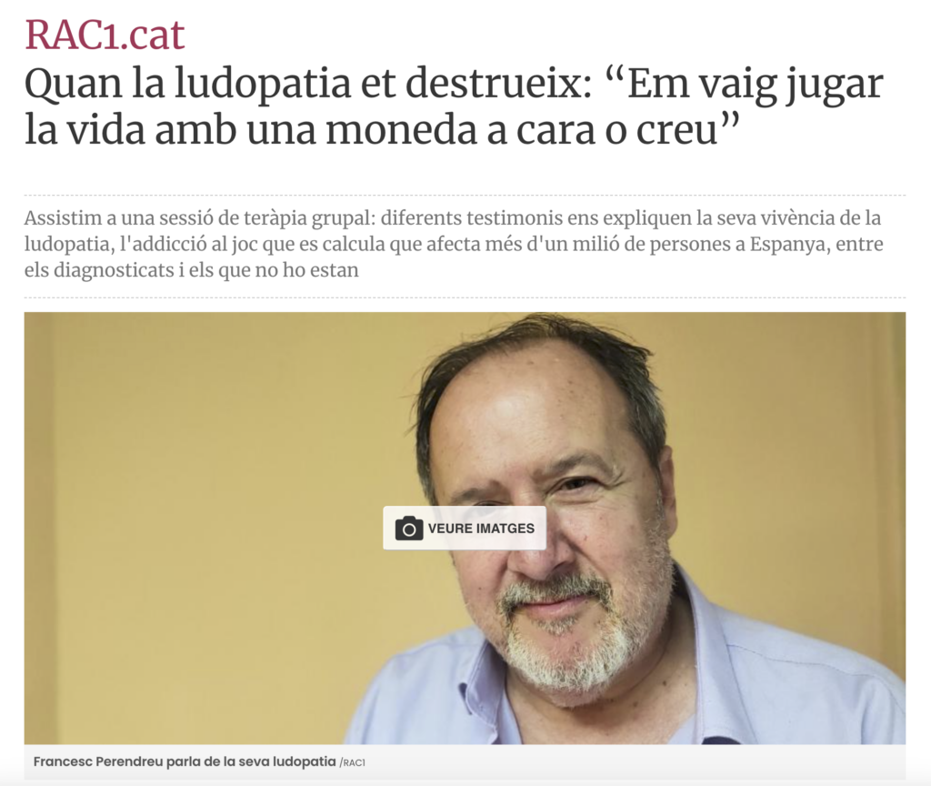 La emisora catalana RAC1 ha publicado un extenso reportaje sobre la adicción al juego basada en la entrevista a Francesc Perendreu, presidente de ACENCAS, y en la experiencia relatada por los pacientes de la terapia de grupo de la entidad.